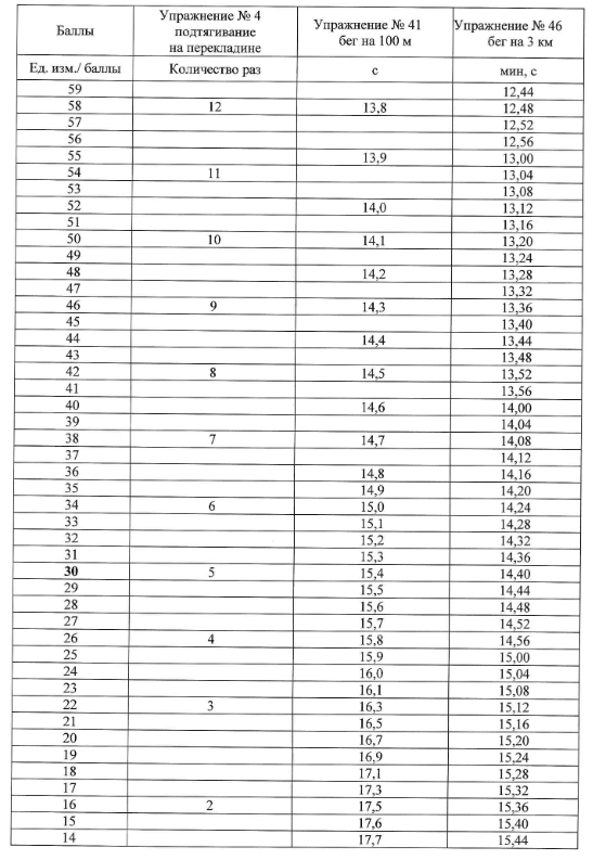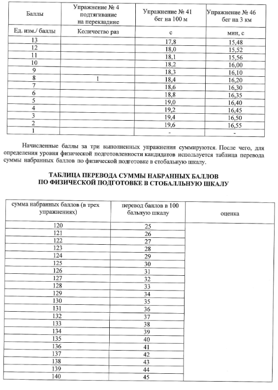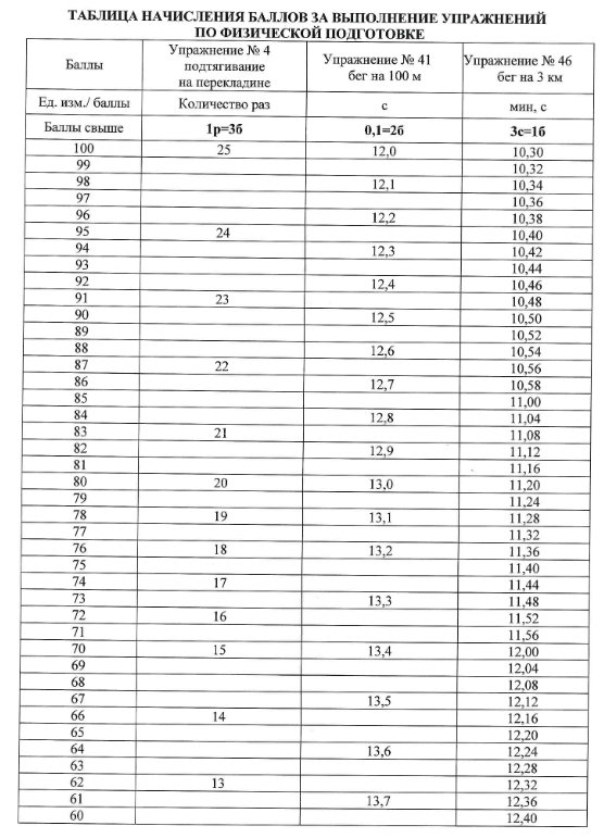 • сдавшие нормативы по физической подготовке: подтягивание на перекладине, бег – 100 м, бег – 3 км.